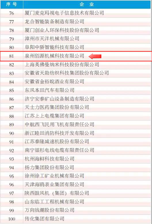 據中國工業報訊,泉州佰源機械科技有限公司入選2018年度中國工業影響力企業百強榜單。