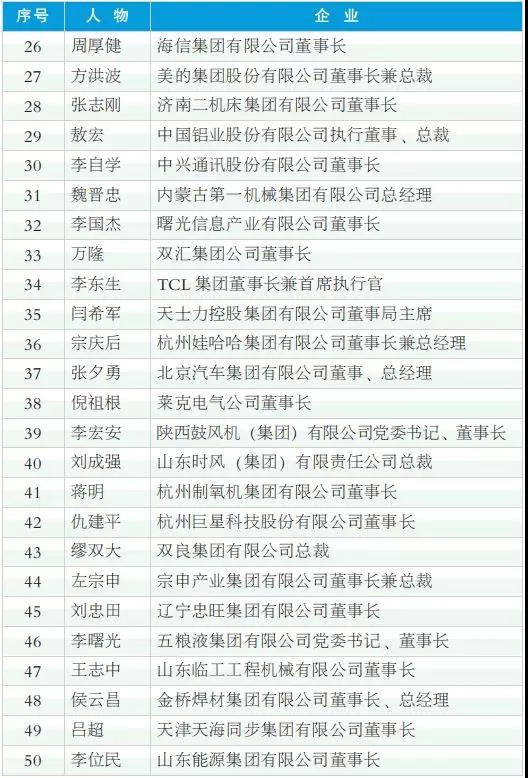2018年度中國工業影響力人物(排名不分先后)
