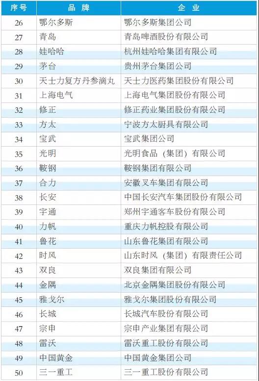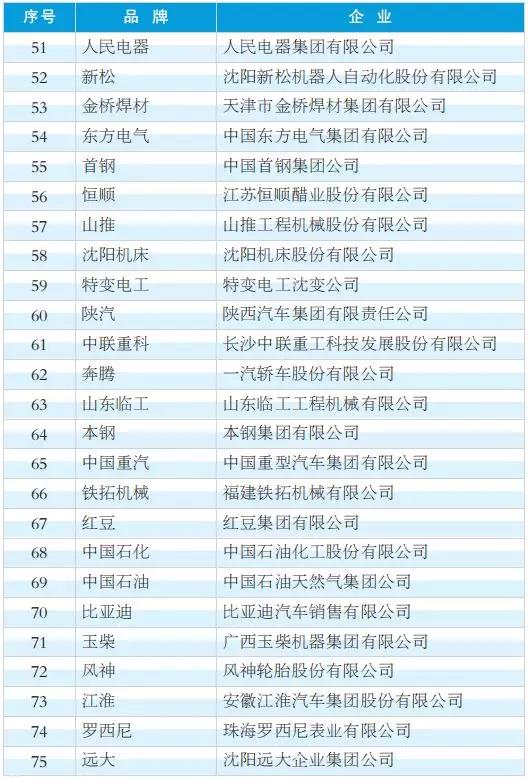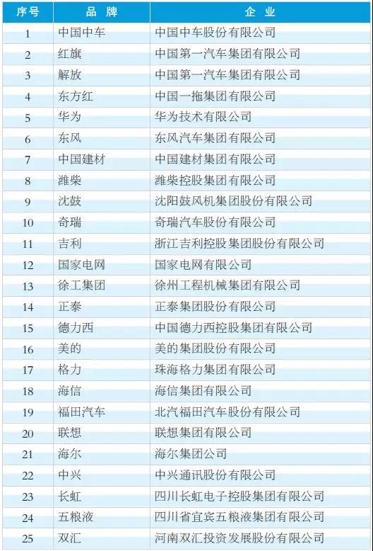 2018年度中國工業影響力品牌(排名不分先后)